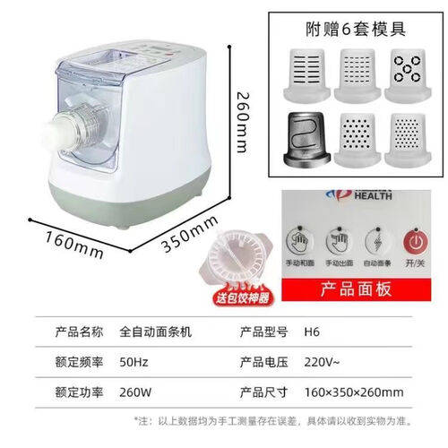 娴砰饺子机全自动家用小型包饺子机,这款电动多功能面条机,能够在3分钟内快速出面,适合忙碌的家庭。它提供了一键出面手擀口感,内置9大模头,能制作多种面条,满足多种口味的需求。